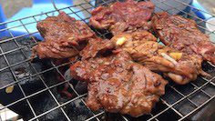 - Cuối cùng là nướng thịt. Xẻo từng miếng thịt mỏng nướng trên lửa than, nướng vừa chín không quá khét và thưởng thức.